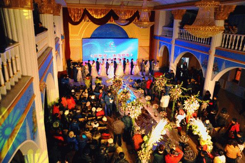 神州北极,圣诞礼堂,红色地毯,白色婚纱,爱的誓言。“北极情——冰雪恋歌”集体婚礼于20111222日在北极圣诞村隆重举行,来自全国各地的10对新人在这里喜结连理。