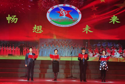 “畅想未来篇章由朗诵《不忘初心 砥砺前行》、大合唱《同一首歌》、《铃儿响叮当》、《共筑中国梦》、《踏歌起舞》组成。
