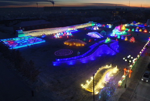 中国北极冰雪文化主题乐园历时18天砌冰垒雪,县局80余家机关、企事业单位及中省直单位积极参与,十余支专业冰雕队伍日夜奋战,于1218日前全面竣工。冰建大气恢弘,流光溢彩,六大文化主题区,令游人流连忘返。